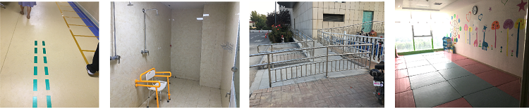 1. 在环境与建筑上,完善了院内标示系统,划分出康复人士专用车位,降低轮椅坡道高度,增加通道扶手等;