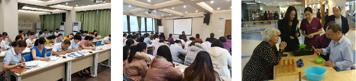 ▲正在对员工进行理论测试 ▲患者及家属参与健康大讲堂 ▲国际专家Chris现场指导