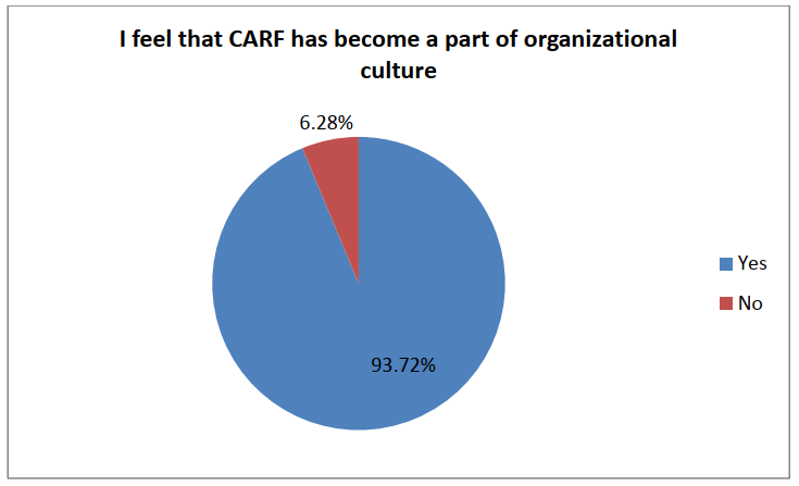 209 or 93.72 % of respondents answered this question with “yes”, so CARF definitely becomes a part of organizational culture.