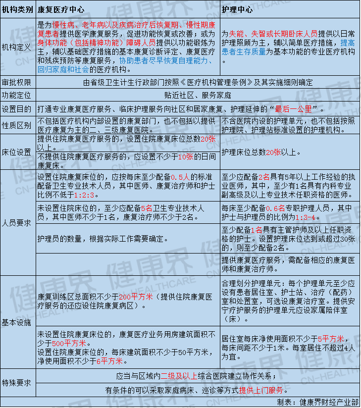 从定义可以看出,康复医疗中心面向对象主要是老年人群、残疾人群和慢病人群,护理中心则是面向失能、失智和长期卧床人群。