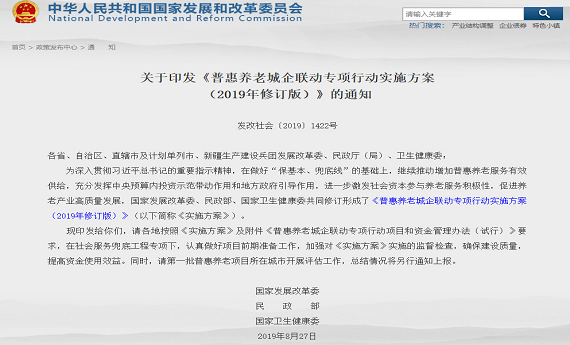 关于印发《普惠养老城企联动专项行动实施方案(2019年修订版)》的通知
