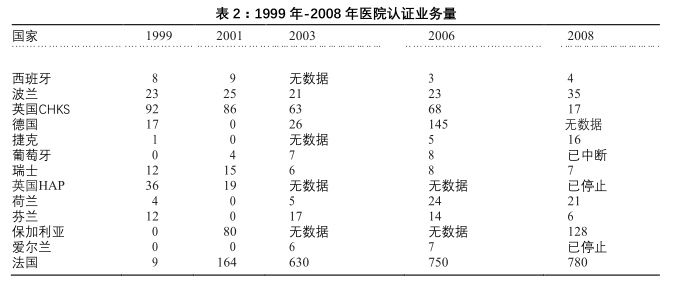 作为提高医疗服务质量的一种策略,医院认证组织在20世纪八九十年代发展加速。最初,各种项目主要借鉴模仿北美的两种模型,即美国医院认证联合委员会(JCAH)和加拿大医院认证委员会。它们大多是独立于政府、自负盈亏的志愿型组织,由专业医学人员推动,并专注于医院的认证。而在过去的十多年间,由于各级政府以及国际捐赠组织的驱动,认证组织和项目对基层医疗、医疗体系和卫生监管的关注逐渐增多。