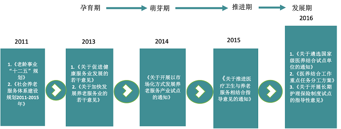 医养结合相关的标准规范和管理制度初步建立,准入门槛进一步降低,养老机构内设诊所实行备案制,各级卫生部部门负责监督和监管。目前,医养结合养老服务业在全国范围内大面积开展,并向法制化、规模化、网络化过渡,逐步实现覆盖城乡、服务合理、综合可持续的医养结合养老服务。