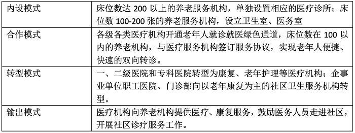 当然,引入医养结合的前提就是要了解其服务模式及途径,从而根据不同的模式及途径入手进行完善。