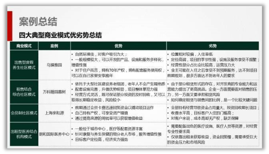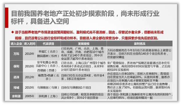 越来越多的企业瞄准养老地产市场,不完全统计,目前已有超过80家企业分食养老这一“蛋糕”。本篇奉上纯干货,养老地产的机会点?商业模式?典型案例?你想要的都在这里啦!
