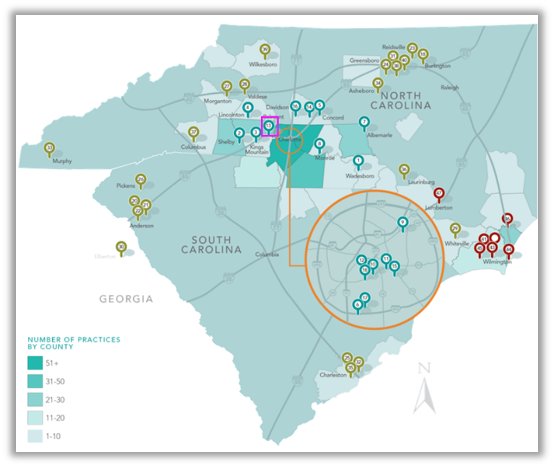 ▲Carolinas康复在整体医疗体系中的位置(紫色方块)