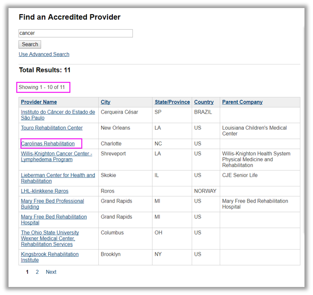 ▲ Carolinas康复是全球11个通过CARF认证的肿瘤康复专科项目之一