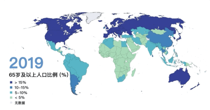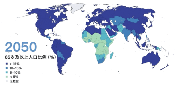 2019年,全球人口每11个人中有一人年龄在65岁及以上;到2050年,这一比例将增加到每6个人中就有一人年龄在65岁及以上;在部分地区,如在欧洲和北美洲,每4个人中将有一个人年龄在65岁或以上。