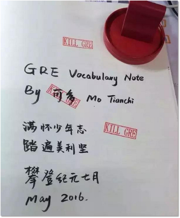 天池曾刻章鼓励自己备战GRE