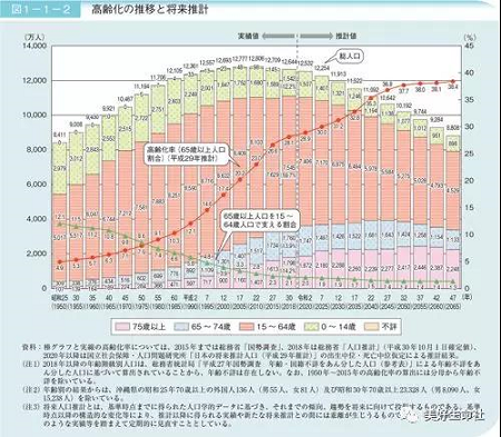 《2019版高龄社会白皮书》显示,目前,日本65岁以上人口占总人口的比例为28.1%,细分来看,65-74岁人口占比13.9,75岁以上的人口占比为14.2%。而随着老龄化的深化,未来75岁以上老年人的比例还将进一步提升。这意味着,对于大量高龄老人而言,他们的子女本身也是老年人了。