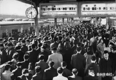1970年代的日本地铁早高峰,也是要靠“推”才能挤进去的。