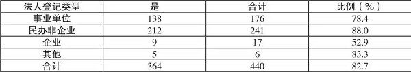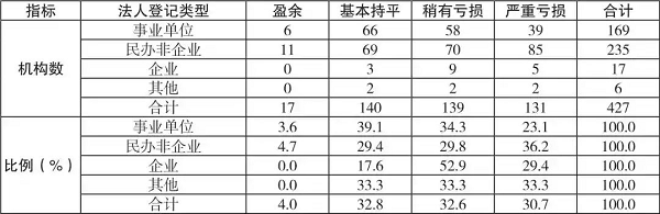 表11:按法人登记类型和机构盈余状态分的机构数和比例