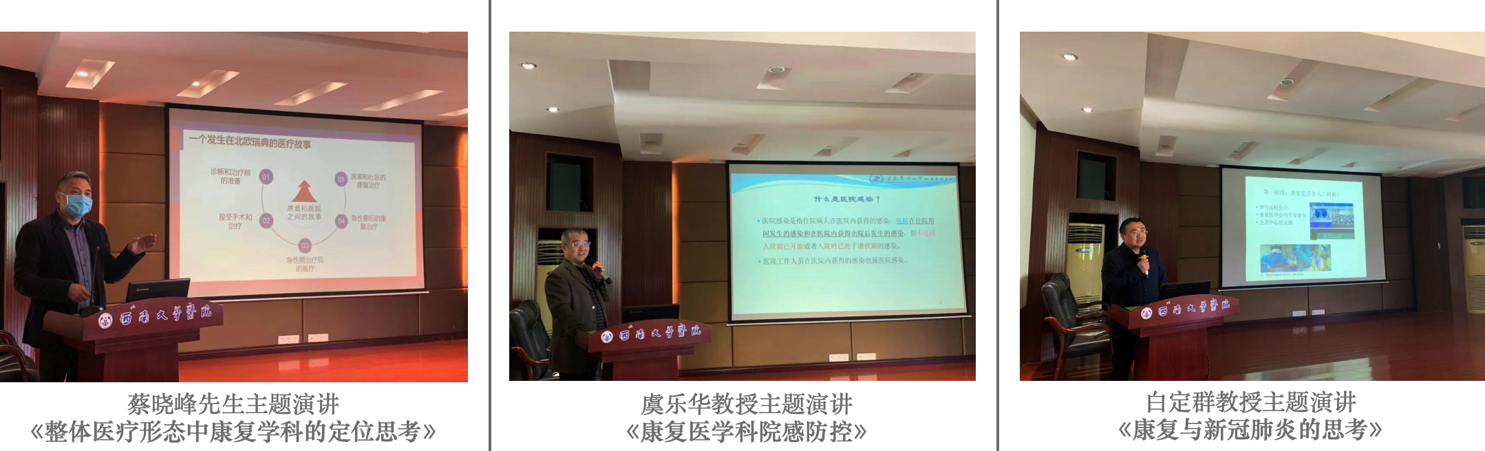 与此同时,西南大学医院积极筹划了学术研讨交流活动,既提高了CARF的影响力,又提升了地区内的学科发展。“2020西部康复医学高质量发展研讨会”,重庆地区的各个康复学科领头人,齐聚百年名校西南大学,公议康复发展前景,共商学科前进要诀,奠定了CARF在康复学科建设和发展中的重要地位,也激活了重庆康复拥抱世界,走向国际一流学科舞台的决心!