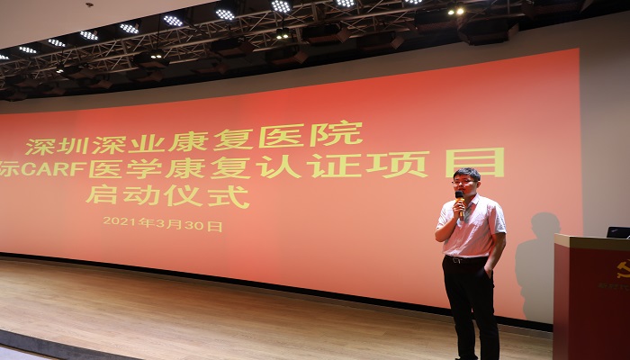 最后,杭州舜道企业管理咨询有限公司董事长蔡晓峰发言,祝贺医院在中国改革开放最前沿阵地“深圳市”有决心引进世界公认的康复质量标准认证体系——CARF认证,运用国际标准规范医院的运营管理,提升医疗质量和服务质量,为创建深圳市标杆式康复医院而努力。