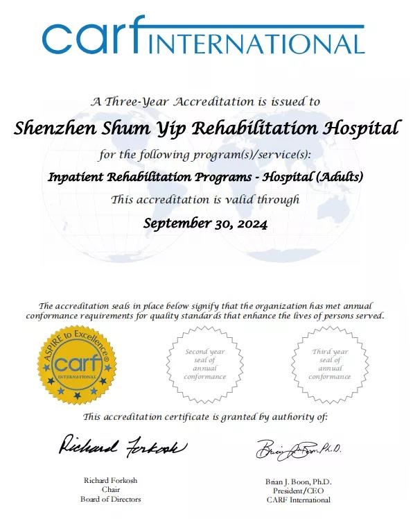 11月13日,深圳深业康复医院正式获得国际康复质量认证委员会(CARF)三年期认证,成为深圳市首家通过此项认证的医疗机构,也是“全国最快通过、筹备时间最短的康复专科医院”!CARF三年期认证,是CARF国际最高级别的权威认证。