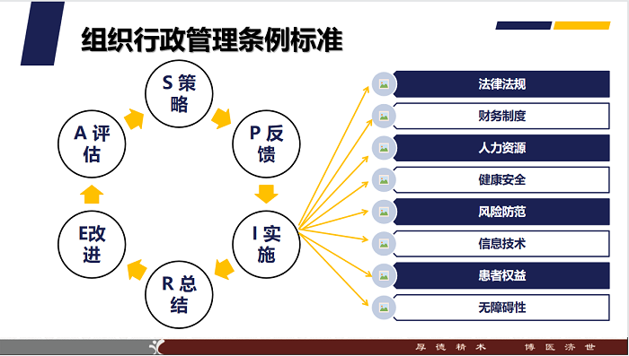 浙江大学医学院附属第二医院赵小英教授拥有几十年从事等级大型综合性医院医疗质量管理经验和等级医院评审实践经历,对康复标准中“质量与安全管理内容”有独到见解。她认为,不论是大型综合性医院还是专科医疗机构,它们有体量规模差异、有医学工作者数量差异,但在医院的管理方面是相通的。只有将质量与安全管理的主要内容明确下来,确定目标door-to-needle,告诉临床科室哪些是风险点,建立临床科室指标,才是高质量康复建设标准和认证的重点。