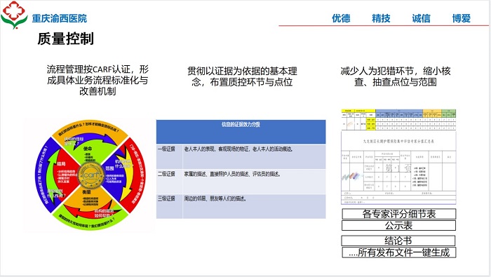 中国残疾人学会社区康复专委会常委周新建教授将目光聚焦在当下亟待解决的养老服务领域,以老年长者为重点服务对象,如何建立精准服务和人文关怀的指控标准化体系。在结合CARF认证理论和实践经验的基础上,参考国外先进养老康复研究团队成果,形成自己对“老年综合评估”的研究和解读,同时用十分接地气的表达分享了2020年至今,逐步实践评估标准期间的各种收获和困难。
