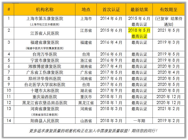 通过不断的摸索和辛勤的准备,江苏省人民医院康复医学中心在2015年6月的首次认证考察中以优秀的表现一次性通过了最高级别的认证。机构选择 CARF 认证,是选择了一条追求卓越、持续改进的道路,尽管充满艰辛与挑战,但相信只要凝聚合力、开拓创新,一定会顺利通过 CARF 认证,成为中国康复医疗机构的标杆和楷模,并为更多中国康复机构通过 CARF 认证、提升康复服务品质做出贡献!