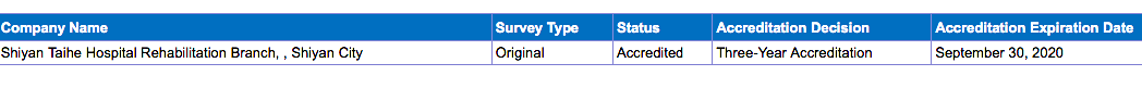 ▲CARF官网发布十堰市太和医院康复院区通过CARF认证的通知