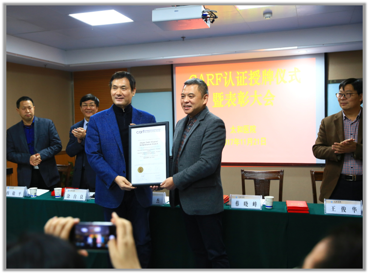 2017年11月21日,我们有幸与太和人共同见证这一历史性的时刻——十堰市太和医院康复院区被授予住院医学康复项目-医院(成人、儿童和青少年)CARF三年期认证。闪耀的金章,印刻着CARF对十堰市太和医院的肯定和嘉奖,更承载着驱动国际康复事业发展的责任和使命,铭记在太和人的心中。届时,医院通过各项评比,评选出“最美CARF人”,为医院持续改进树立了标杆和榜样。作为十堰市唯一一家康复专科医院,中国大陆第八家通过CARF认证的机构,十堰市太和医院康复院区已经成为以国际康复金标准为引领的标杆型医院。医院在管理体系、环境建设、服务体系等方面与国际化标准进行全方位对接,并以高分一举通过CARF三年期认证,成为CARF(中国)群星荟中闪亮的太和星。