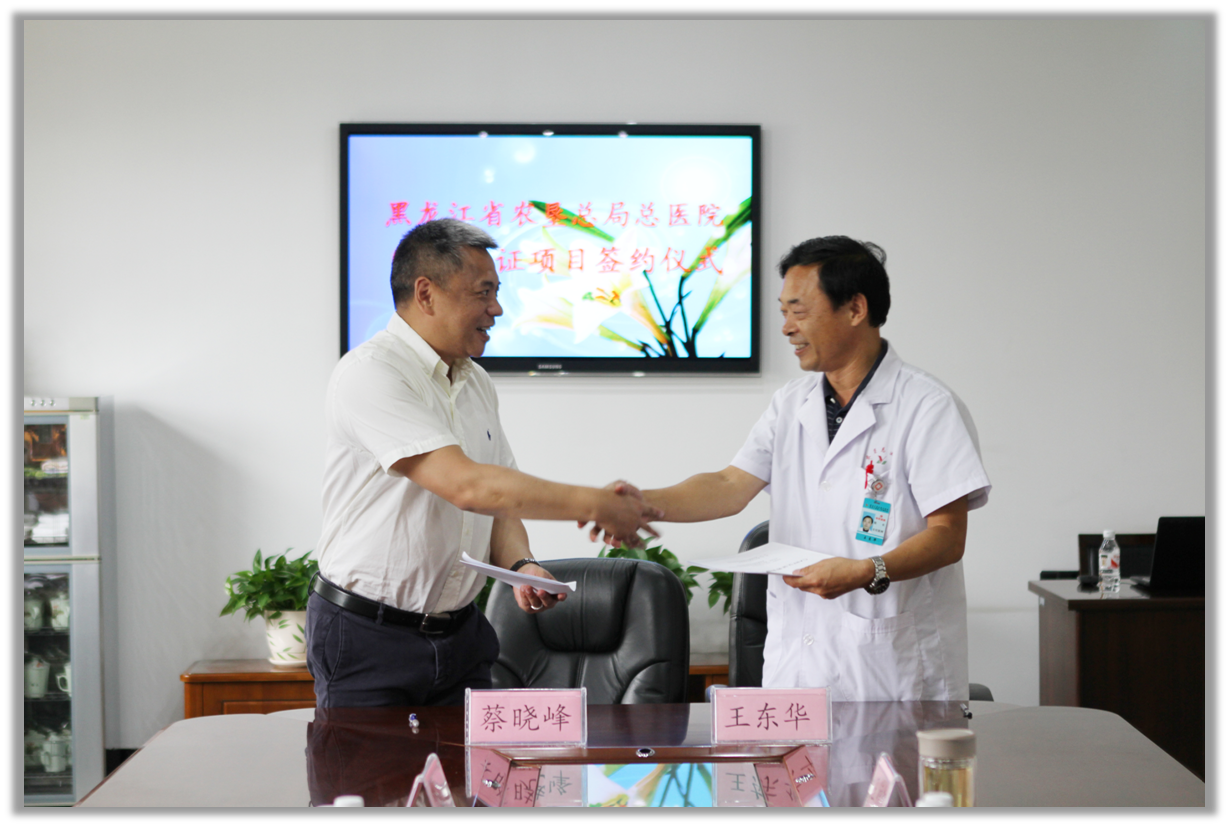 农垦总局总医院王东华院长(右)OKEWAY舜道蔡晓峰总经理(左)