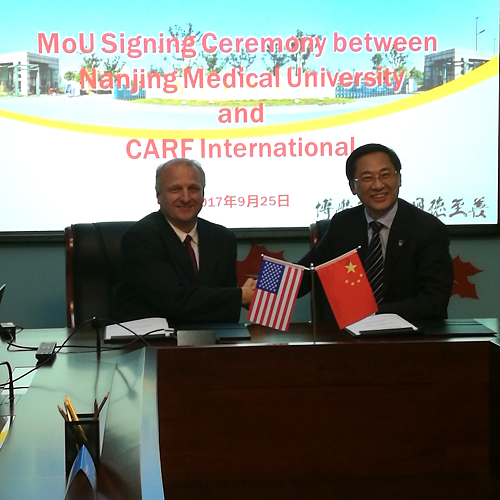 9月25日下午,CARF一行前往南京医科大学访问交流。Brian J. Boon博士介绍了CARF机构的发展和现状,并期待与高校康复医学院在科教研方面寻求合作。王林副校长向外宾介绍了南京医科大学的基本情况,并就康复医学院与CARF的合作进行了深入交流。双方就建立合作关系达成初步合作意向并签署合作备忘录。