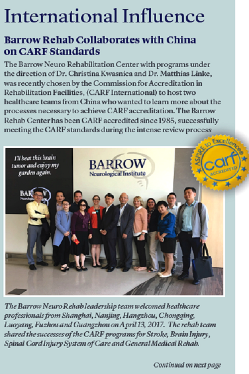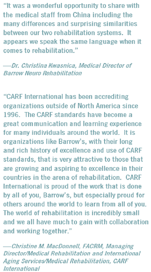 与此同时,Barrow神经康复医疗主管Christina Kwasnica医生,及CARF国际的常务董事Christine M. MacDonnell也对此次交流给予了高度肯定。