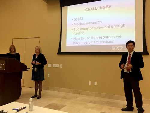 院方组织了行政和临床代表们给大家带来了十分详尽的介绍,在介绍期间我们感受到了来自大洋彼岸的热情与细致,无论是内容还是流程上处处体现着院方的精心准备,和对于执行CARF标准的一丝不苟。介绍会在医院的大会议室举行,淡黄色柔和的灯光下,我们团聚一起,聆听了院方精心制作的各种PPT介绍,席间励文博士做了精彩的翻译。