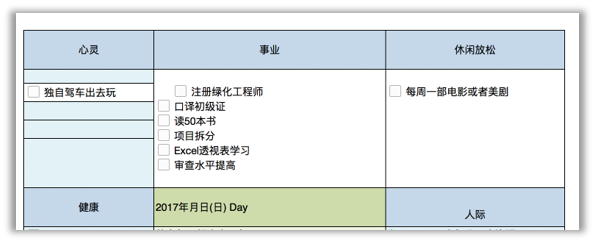 我想考注册绿化工程师,考口译证,提高项目审查能力,还要照顾孩子,平时也想看看电影和看书,但是这些计划总是完成不了,我感觉到特别焦虑,小强,我该怎么办呢?别急,我们先来看看她年度计划的九宫格吧(部分):