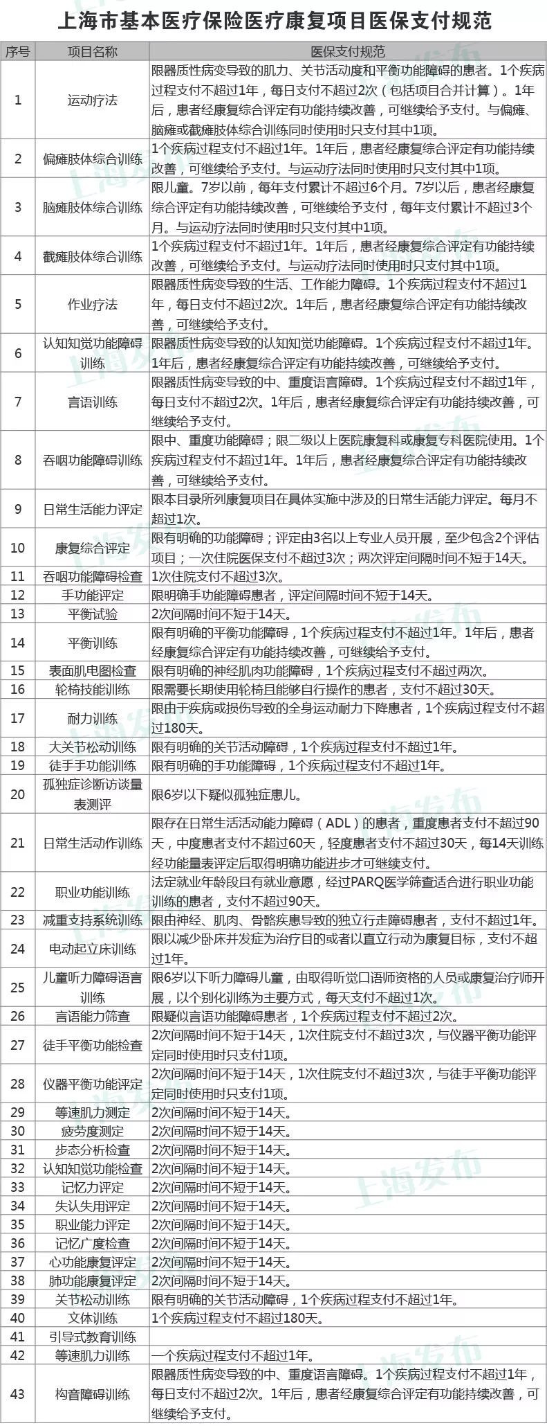 市人社局说,为合理有效使用医保基金,本市出台《上海市基本医疗保险医疗康复项目医保支付规范》,加强对医疗康复项目的监管和费用审核管理,防止基金浪费和服务过度利用。