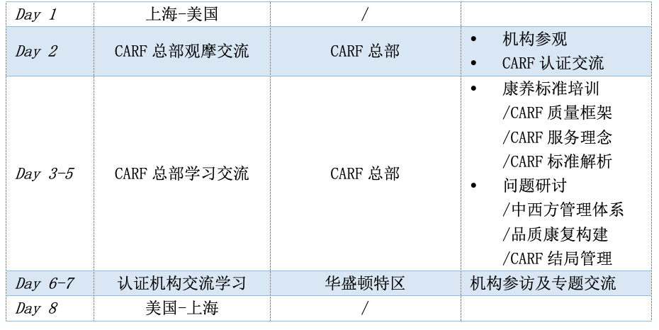 在此背景下,舜道OKEWAY联合美国CARF总部,共同组织“中西方康复与养老质控管理交流”为主题的考察参观活动,提供与CARF总部和高层领导就CARF认证及CARF标准理解和实践深度交流的机会,同时结合CARF认证通过机构的参观切实感受CARF对康复管理的效用。