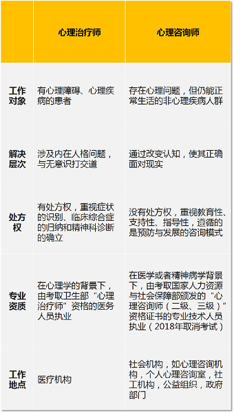 透过执业考试来看,精神科执业医师考试侧重考察精神心理疾病的诊断鉴别和药理学及用药原则;心理治疗师侧重考察心理疾病诊断鉴别和心理学及治疗学理论。从某种严格意义上而言,没有获取卫生部“心理治疗师”认证的精神科医生也并不合适进行没有药物介入的心理治疗。