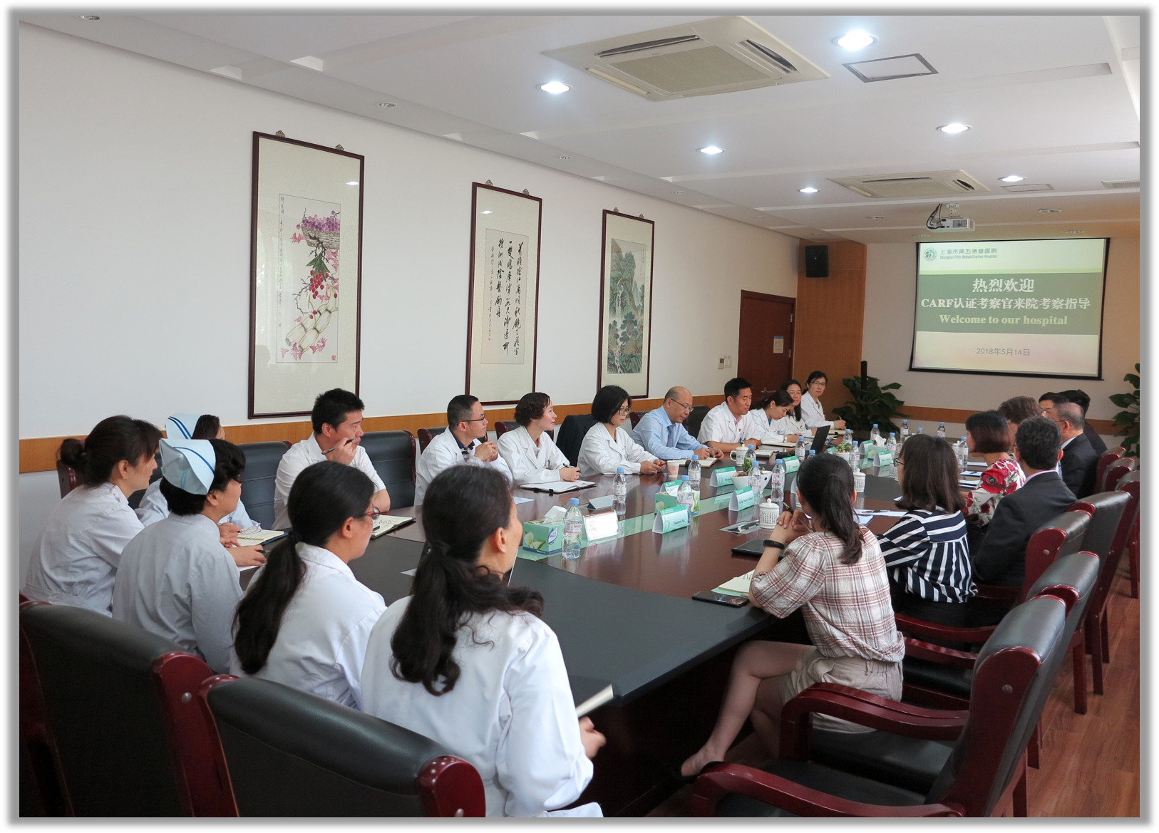 此次三轮CARF认证考察自2018年5月14日至16日,为期三天,考察形式依旧以人员访谈、环境走访和文档查阅为主,但内容和侧重点不只限于CARF标准的落实,而是在这三年期间,医院是如何在CARF标准的指导下对日常工作进行持续改进,如何对CARF核心理念进行升华。